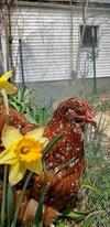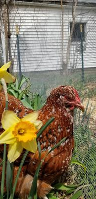 The last chicken was an unknown breed, so we called him Surprise. Turns out all the other chickens were hens and he was a rooster.