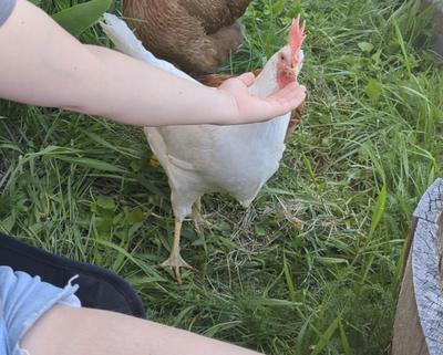 I am in a wheel chair and she loved riding on my lap. She was a beautiful chicken. And everyone that knows me knows the bird. Like she is well known! Even the mail lady knows her! Just everyone loved her.
