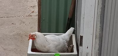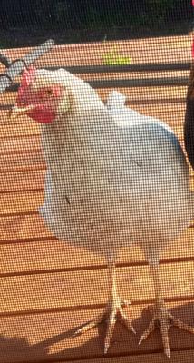 We've gotten close to our 'babies' during quarantine. We had three large white chicks of which we do not know the breed. They've gotten very large quickly.