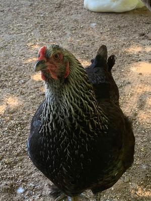 She was my favorite chicken! She was the colors of the USA, red, white and blue. She was sweet and soft and would always come up to us.