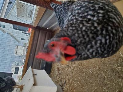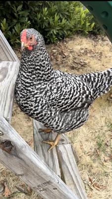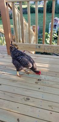 She was my baby, beautiful barred rock. Loved cuddles and treats. She came in and played with my family. Loved jumping on me when I did yard work.