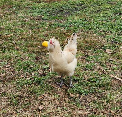 We took in the 8 month old beautiful cream Legbar from a friend after neighborhood dogs killed 3 of their 4 chickens.