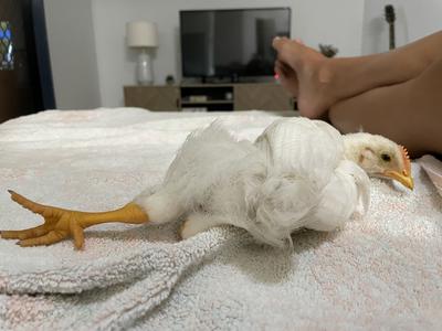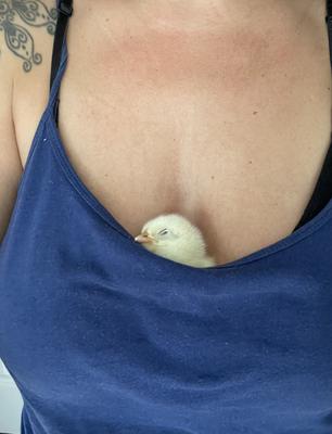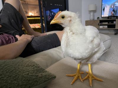 One day visiting a farm, my partner and I got offered a little chicken that got hatched by the ducks. They didn’t know who was the mom and didn’t have a safe coop to leave it, so we brought it home.
