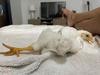I lost him today. I found him in the morning in his coop. He was a really sweet baby except he used poop on me a lot. He's been sick for a few days. There was some problem with his eyes, they were all swollen up and there was something coming out of them. It was not just his eyes, his lower face also swelled up later.