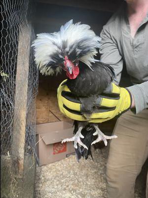 Burger was a sweet Polish rooster. He loved and protected his ladies. He often would stay in the coop with the more shy or broody ladies.