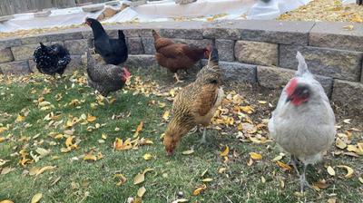 But this spring he had 5 more - more normal looking hens for eggs and eating bugs.