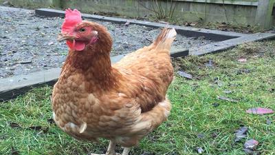 Nick had a very bad start in life, being kept in permanent light in a tiny cage and forced to lay eggs. When she arrived she had no feathers on her back, two random feathers sticking up from her bottom and no feathers around her neck.